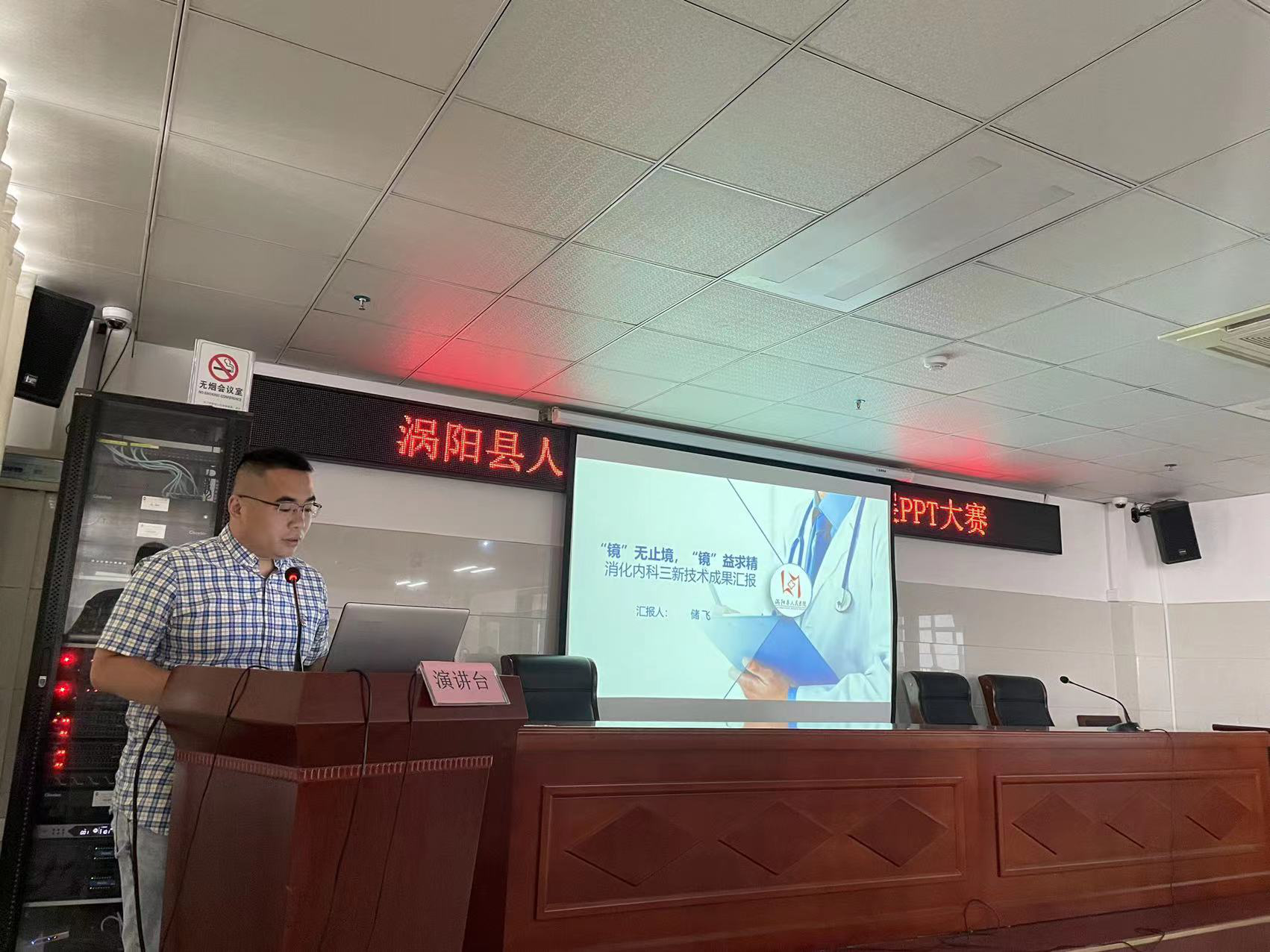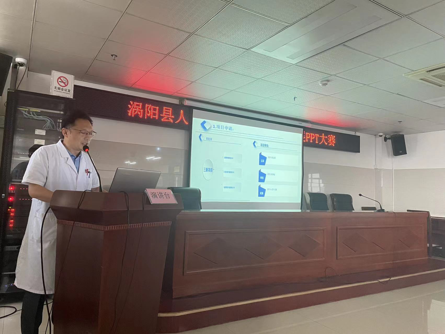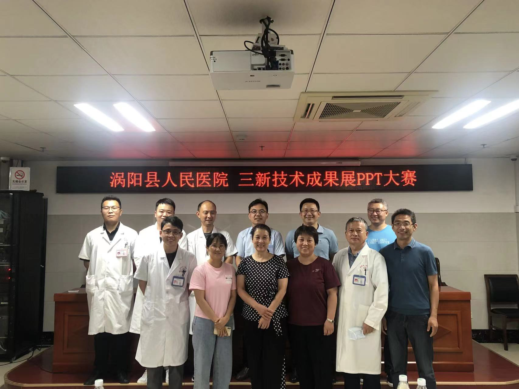 举行三新技术成果展示大赛,副院长、院医疗技术委员会主任委员张艳环和副院长、院伦理委员会主任委员王化猛等7人组成的专业评审团现场为参赛选手打分,17个科室参赛。