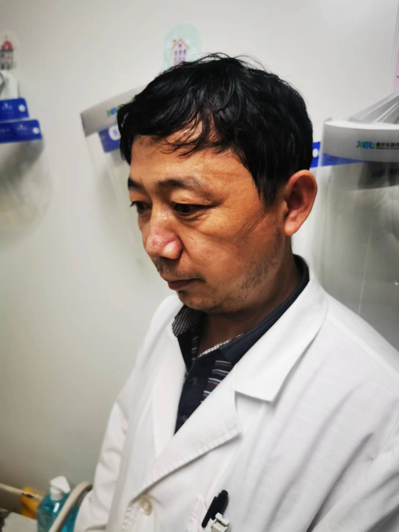 自涡阳发生疫情以来,每个检测人员在核酸实验室连续工作十多个小时便是常态,他作为负责人每天都要工作十五小时以上,夜间12点之前几乎没有到过家,最晚的一次凌晨4点多才回到家休息,仅仅睡了3个小时又要开始第二天的奋战,高强度、连续长时间的工作使本来已经好转的椎间盘突出状况又犯了甚至有点加重,工作中腰部要带个护腰,连续工作两三个小时就要倚着墙靠一会同时用手捶打腰部以缓解腰部酸疼症状,这时候他多么想请假休息一下,但是一看到还有大批的核酸标本没有检测,其他工作人员都在忙碌,不能影响疫情防控检测的进度,他咬牙坚持了,稍作休息症状有所缓解就又和大家一起投入到紧张忙碌工作中。