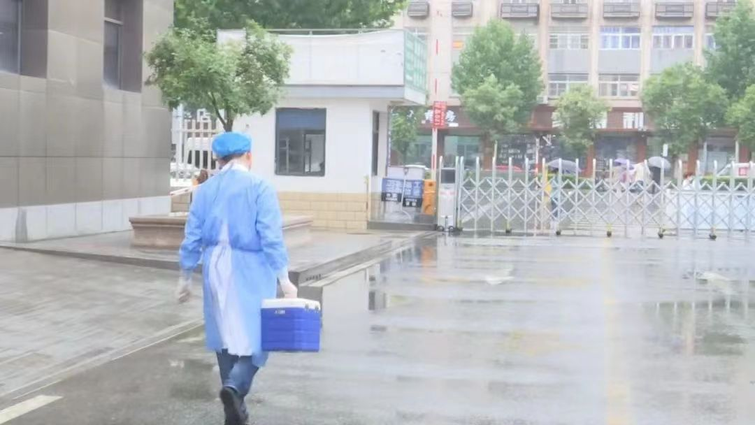在核酸采集的整个流程中,快速安全地将核酸样本送达实验室,是保证检测人最快得到检测结果的重要一环。张建军和科内核酸标本转运人员每天要把院外移动方舱车核酸标本采集点、发热门诊、一楼院内定点核酸采集点的核酸标本及时收取转运到核酸实验室,核酸标本转运员每2个小时转运一次、一路奔跑,快速将核酸标本送往核酸检测室。