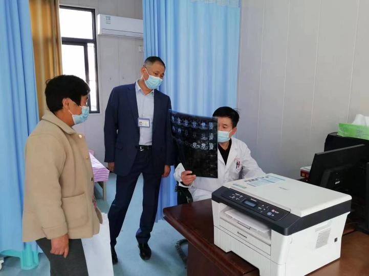 在各个诊室,专家们忙得不亦乐乎。骨一科主任王海洋一边为前来就诊的患者分析影像检查结果、提出治疗和康复指导,一边对卫生院骨科医师进行读片、用药、手术方式等全方位的带教;中医科主任庄捷为前来就诊的群众切脉,并用中医整体治疗的理念为患者提供治疗方案;神经内科副主任医师施磊所在的诊室,大多是由子女带着患有脑血管疾病的老年人前来就诊,经过详尽、细致的问诊,施磊为他们制定了个体化治疗方案。手术室内,骨科、普外科医生有条不紊地忙碌着、指导着。