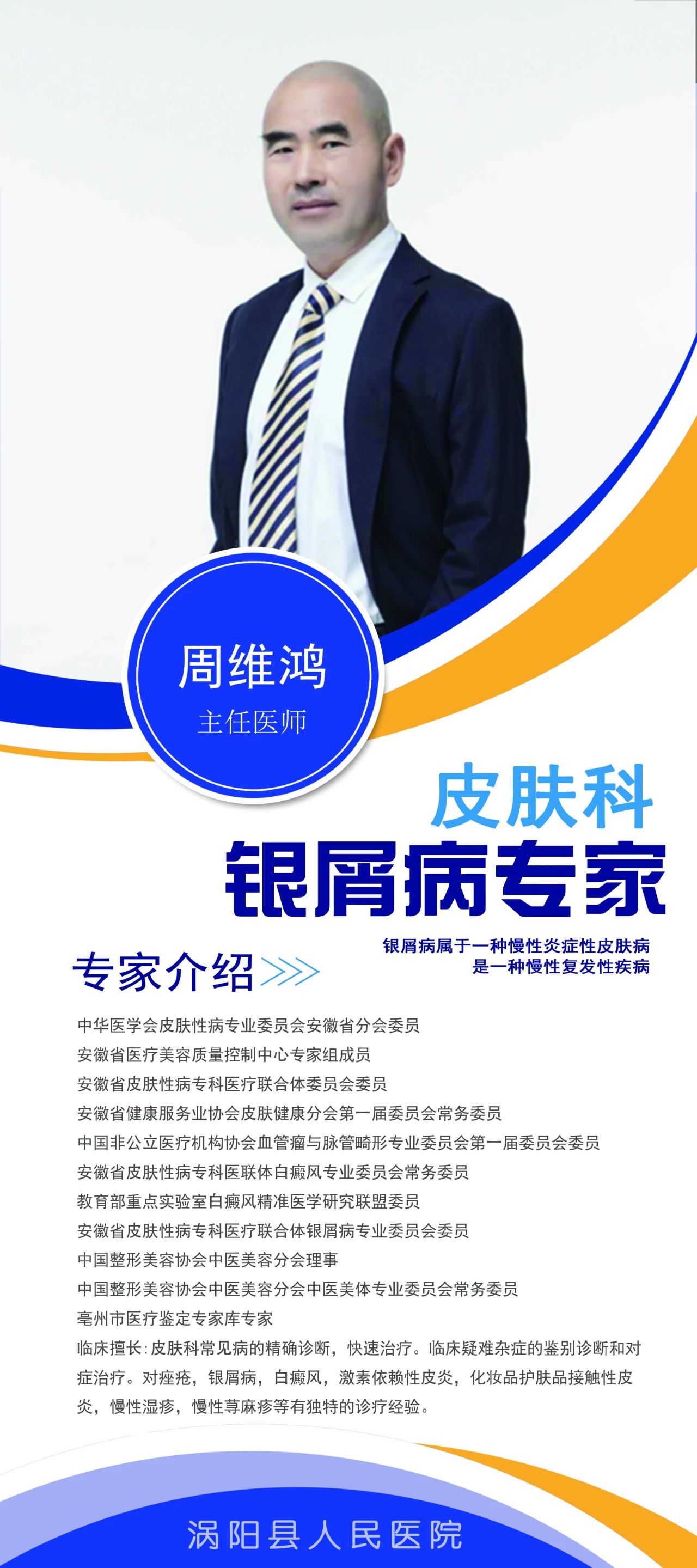 为了帮助皮肤科患者更好的管理疾病和规范治疗,摆脱疾病痛苦,提高生活质量。涡阳县人民医院定于3月25日(周六)上午9:05—11:05,在急救中心二楼皮肤科门诊举办“我挺你”银屑病公众关爱项目义诊活动,届时中国科学技术大学附属第一医院安徽省立医院唐隽教授将亲临现场义诊,欢迎广大病友前来问诊咨询。