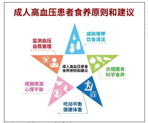 每人每日食盐摄入量逐步降至 5g 以下;增加富钾食物(如新鲜蔬菜、水果和豆类等)摄入。清淡饮食,少吃含高脂肪、高胆固醇的食物。适当选择富含钙、镁的食物。膳食中的饱和脂肪酸可以升高血脂和血清胆固醇水平,从而增加高血压患者发生冠心病、脑卒中等风险。因此,高血压患者要注意限制膳食脂肪和胆固醇摄入量,包括油炸食品和动物内脏。少吃加工红肉制品,如培根、香肠、腊肠等。