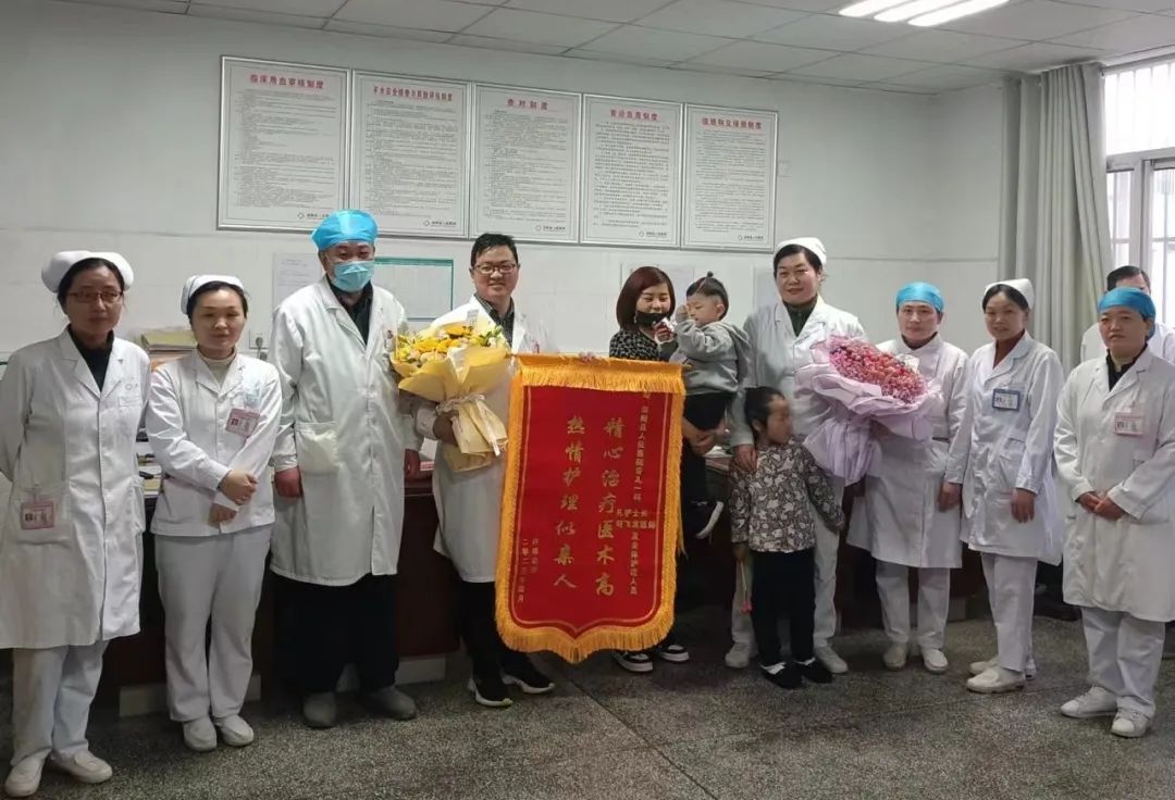 两位孩子病情逐渐好转,宝妈为了表达感谢之情,写了一封感谢信,给我们护理团队和主治医生送了面锦旗,又特意订了两束鲜花送到护士站,还特别表明是为了感谢我们孔护士长及带领的护理团队,为每一份关照和护理都温暖入心,使她感动万分,其实工作中,有了病人的支持和理解,工作再累再苦都是值得的!(陈莉 孔苗苗)