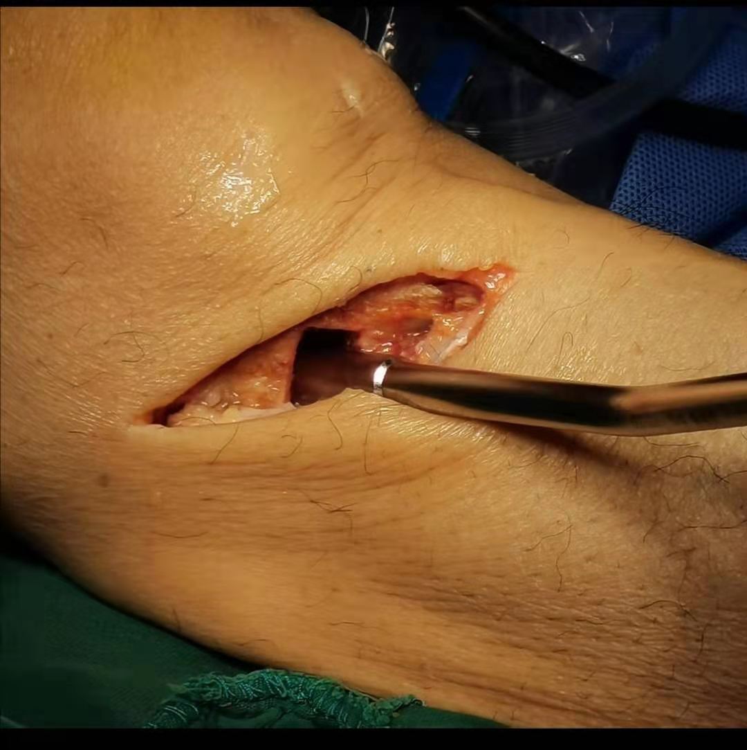 该手术采取小切口、胫骨平台外侧开窗后,在关节镜辅助下直视塌陷处,利用顶棒使塌陷关节面复位,从而达到真正的解剖复位,同时进行打压植骨,再利用锁定钢板固定,使塌陷关节面获得良好支撑,患者术后第一天支具保护下锻炼,获得良好效果。