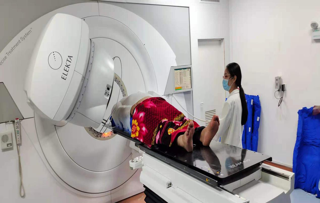 为了确保放疗的安全,王从禹主任带领团队从精准定位到靶区勾画,再到物理计划设计,然后进行模体验证,最后再给患者进行治疗,每个环节都精益求精。在肿瘤内科付心好主任团队的密切合作下,经过整个团队的努力,王某强的首次放疗达到了预期的目标,且取得了很好的疗效。接下来,王某强还要在我院放疗科继续做4周的放射治疗。