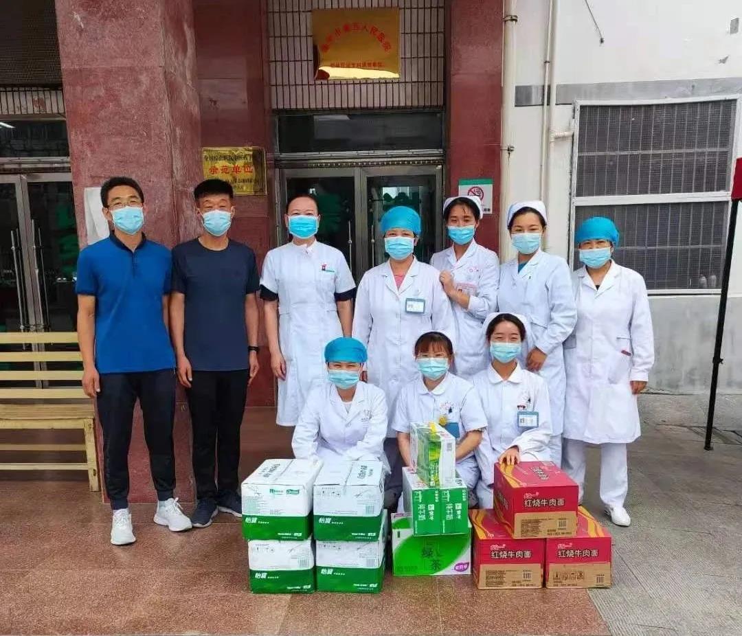 8月5日、6日,我院党委委员、副院长张艳环,党委委员、工会主席韩敏,党委委员、纪委书记栗莉平,党委委员、纪委副书记张永强,院办室主任刘强,医务部负责人柴林涛,护理部负责人徐程莹等一行,先后深入感染科、发热门诊、党校隔离点等疫情防控一线部门,给他们送去慰问品,代表医院向在高温下坚守、奋战在一线的工作人员致以亲切慰问,每到一处,他们都鼓励大家继续坚守岗位、履职尽责、再接再厉,坚决打赢疫情防控保卫战。
