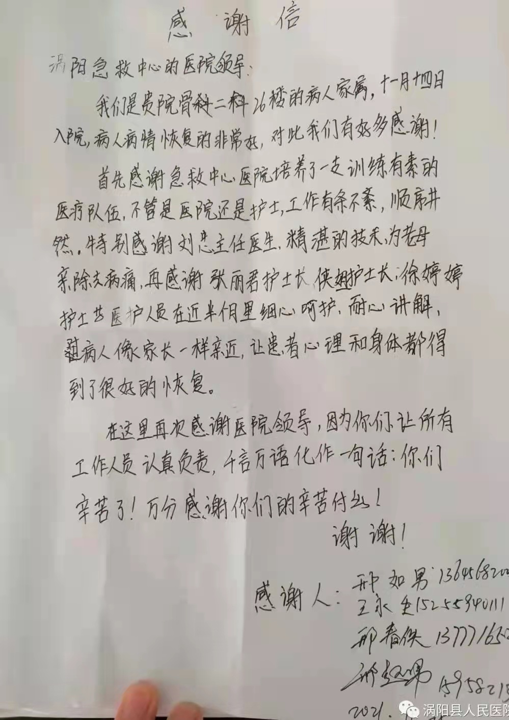 2021年11月30日上午8:38我院办公室接到一名患者的电话,该患者名叫张新民是一名退休多年的教师,打电话的原因是为感谢我院肿瘤内科中医主任医师郝文。