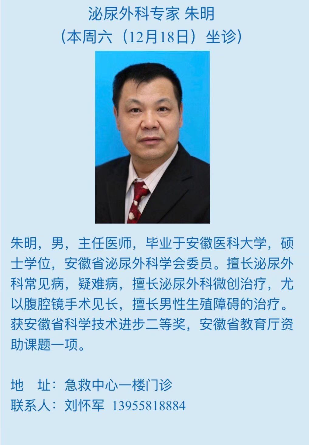 12月11日(本周六)中科附一院(安徽省立医院)专家来我院坐诊