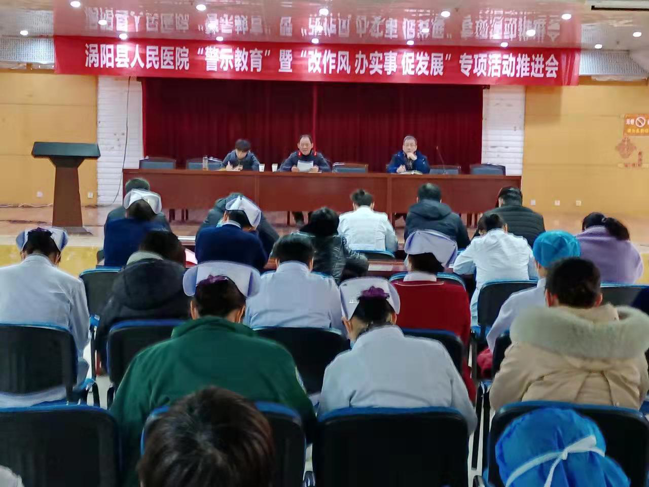 党委书记曹锡君就务实推进“改作风 办实事 促发展”专项活动发表讲话。要求各科室要高度重视,从提高患者就医满意度出发,在工作中多动脑筋,创造性的开展工作,努力使诊疗更加安全、就诊更加便利、沟通更加有效,不断推动医疗服务高质量发展。就开展好本次专项活动,党委书记曹锡君提出了具体要求:一是严肃工作纪律,规范工作秩序。按时上下班,工作日严禁饮酒、上班期间不做与工作无关的事情,积极完成领导交办的各项工作任务,不得无故推诿。二是要改进工作作风 提升工作实效。要以提升工作实效为抓手,以工作能力的提升来反映工作作风的改进。三是要疫情再加强 思想再重视。进一步抓实抓细我院疫情常态化防控,不折不扣地把疫情防控措施落实到位,切实维护好医院的安全稳定。