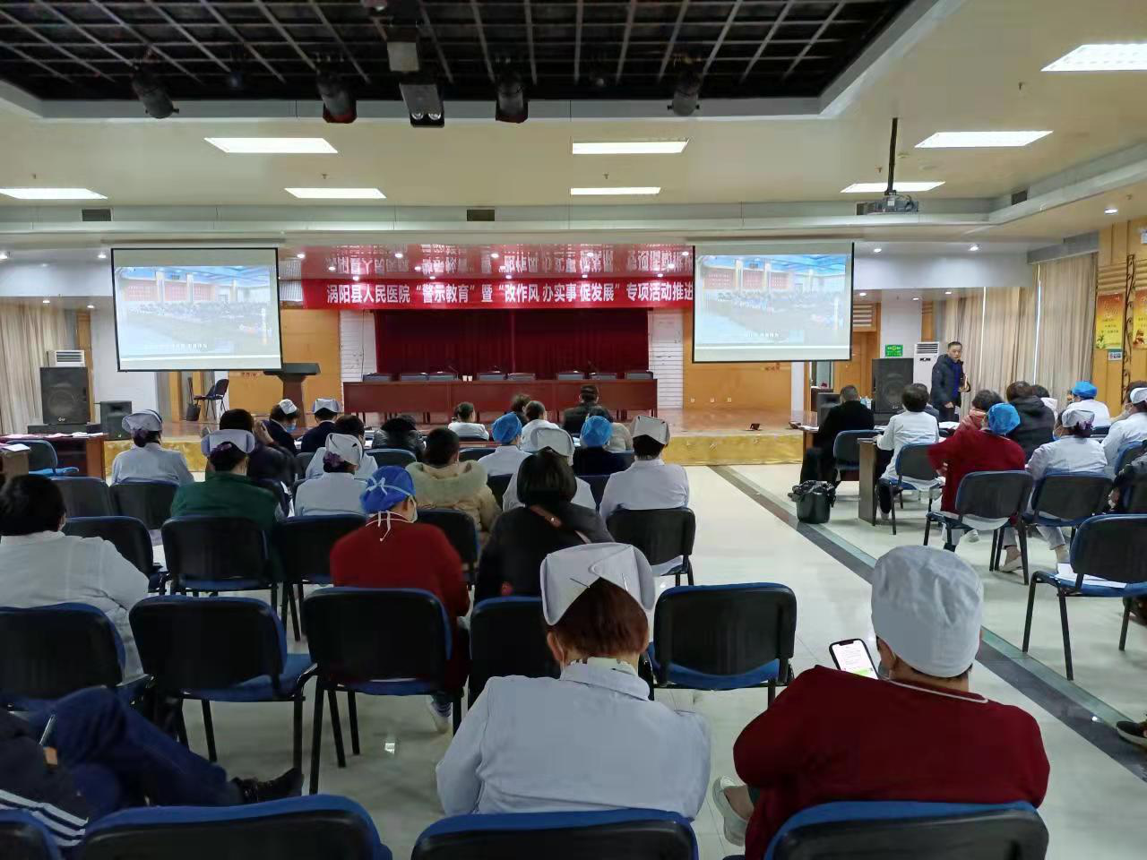 党委委员、纪委书记栗莉平宣读了《涡阳县人民医院廉洁从业工作方案(2021-2024)》,她要求全院党员干部要不断增强拒腐防变和抵御风险的能力,筑牢思想防线,警钟长鸣,营造风清气正的医疗环境。
