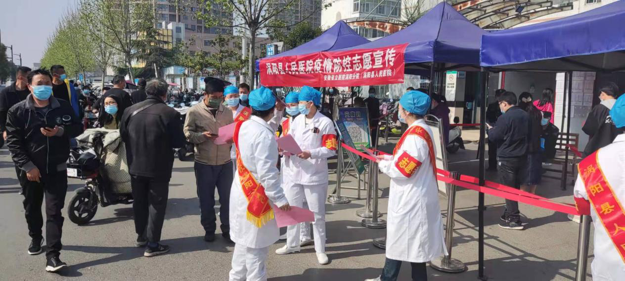 4月8日,我院医务志愿者在党委委员、工会主席韩敏的带领下到门诊大厅、院内核酸采集点、移动核酸采集车、医院入口处等人员密集地方发放疫情防控宣传单,并指导侯诊患者间隔就坐、提醒未戴好口罩的患者按规范戴好口罩。向群众科普相关防疫知识,提高群众主动参与疫情防控自觉性。