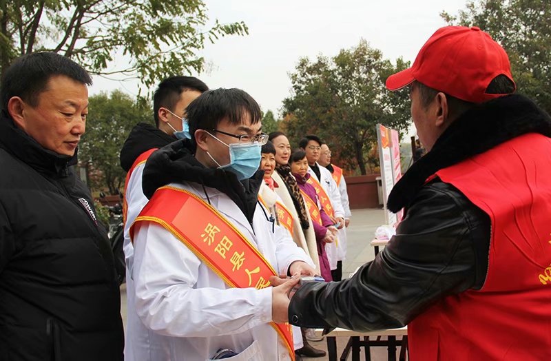 12月5日上午,由涡阳县新时代文明实践中心集中开展的2020年“国际志愿者日”志愿者服务活动暨表彰大会在滨河社区公园举行。我院白衣天使志愿者服务队积作为一支特殊的志愿者队伍,肩负着救死扶伤、医人病痛、奉献社会的光荣使命,积极开展各项志愿服务活动,得到了广大群众的普遍认可。本次活动在院党委委员、工会主席韩敏的带领下,他们冒着严寒来到滨河公园,加入到全县志愿者服务队伍,这些队伍中有恒康科技按摩志愿者服务队、社区志愿者义剪队、蓝天志愿者救援队等。县医院志愿者服务队在活动现场为大家热情地测量血压,接受咨询,诊疗常见病、多发病、发放健康小资料等,受到群众好评。(郭义军)