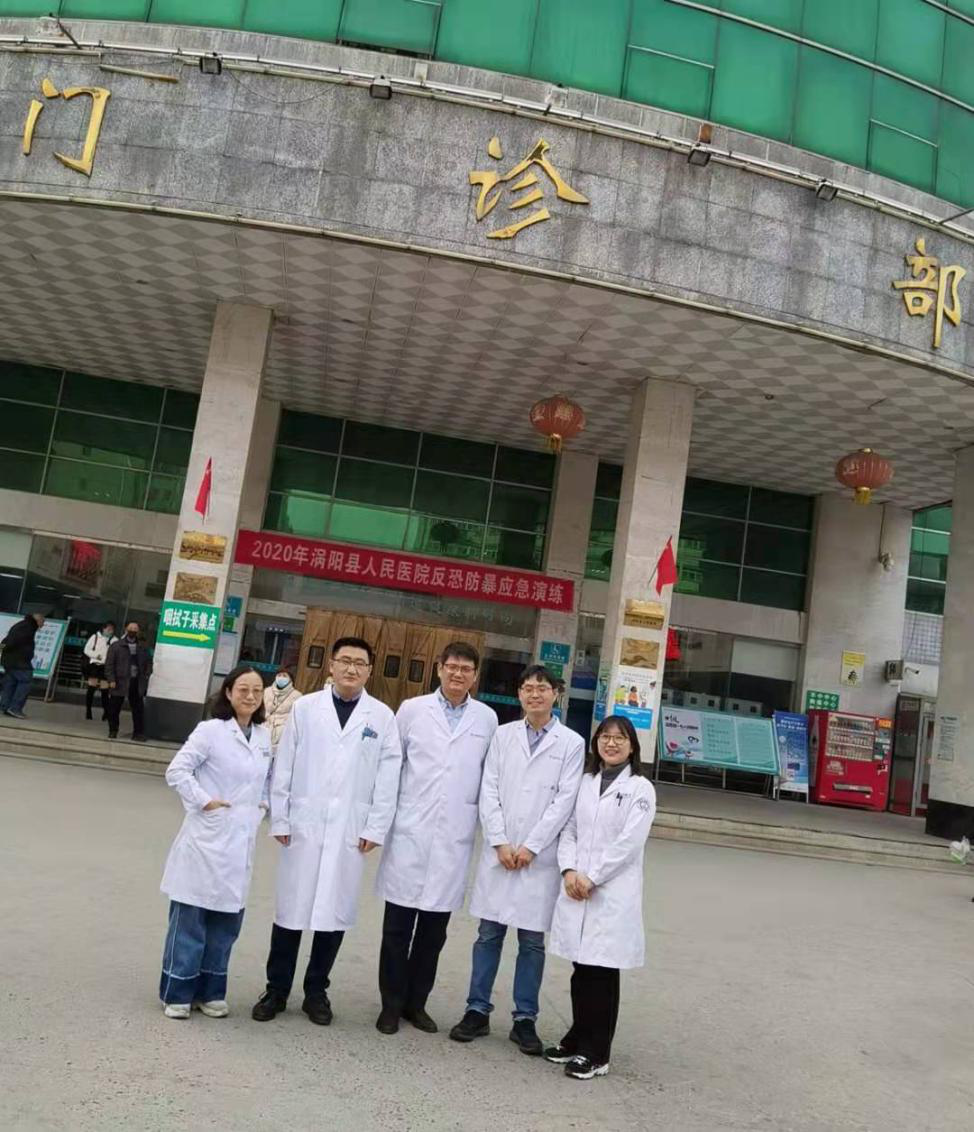 五位帮扶专家在涡阳县人民医院门诊楼前合影