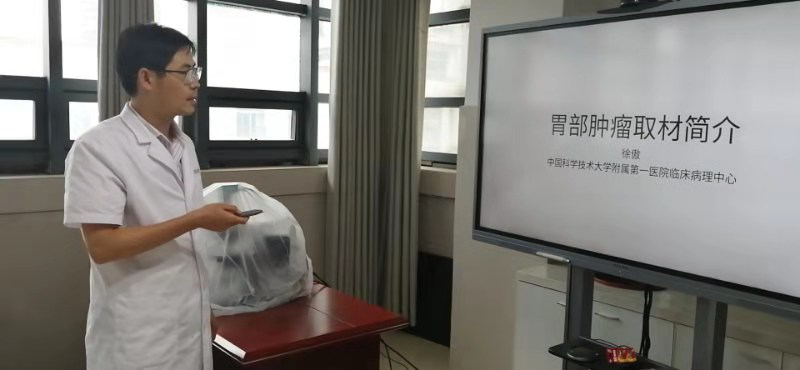 下手。徐傲通过培训讲座让大家更深刻认识到标本固定取材的重要性,特别强调恶性肿瘤根治标本的固定效果对后期辅助检查(如免疫组化、基因检测等)的影响、切缘受累情况及淋巴结受累数目对临床判断分期预后的作用,进一步规范了涡阳县人民医院病理科的标本固定时间、试剂的使用和取材部位、大小厚度及块数等操作。为了提高涡阳县人民医院病理科人员的系统基础理论水平,徐傲准备了许多课件,坚持每周在科内开展一次理论知识培训讲课,还把与课程相关的典型病例切片从合肥带来给大家学习,切实提高了大家的业务技术水平。看到涡阳县人民医院病理参考书较少已不能满足更新较快的病理学知识,他又自费购买了数十本电子版病理专业书,下载到科室电脑上方便大家随时查阅学习。