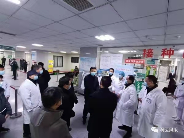 2021年1月1日上午9时许,县委书记胡明文,县人大常委会主任刘峰,县委常委、县委办公室主任、县政法委书记苏志杰,副县长、县卫健委主任蒋召亮等县领导在县卫健委、县疾控中心有关领导的陪同下到我院视察疫情防控及新冠疫苗接种工作。