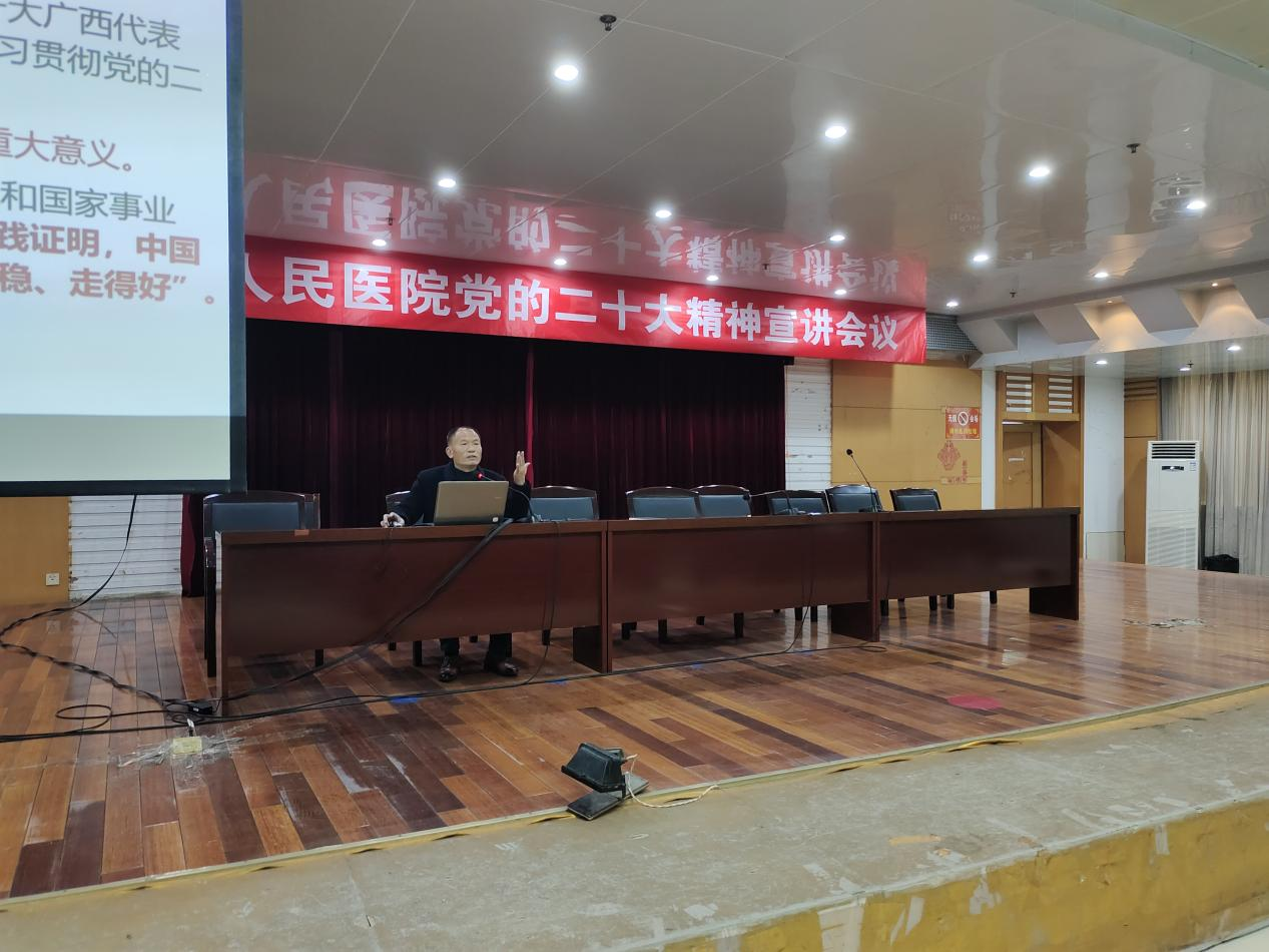 党的二十大是全党全国各族人民政治生活中的一件大事,为深入了解大会精神,做好党的二十大精神的学习、领会和贯彻落实工作。2022年11月21日,我院在门诊三楼大会议室召开党的二十大精神宣讲会议,特邀县委党校高级讲师、办公室主任邓飞来院作党的二十大精神宣讲报告。会议由院党委书记张锦主持,领导班子成员、全体中层干部、各支部委员参加会议。