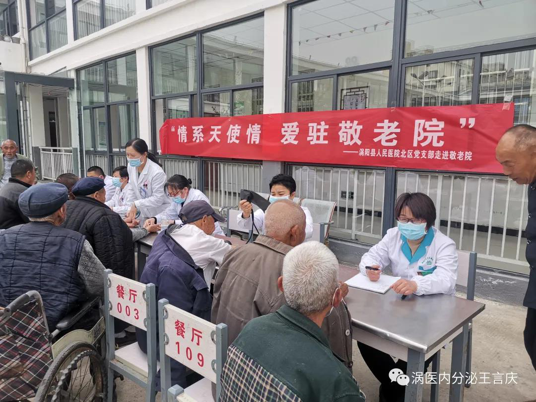 2021年4月16日,北区党支部为响应院党委学党史办实事号召,积极开展主题为“做志愿表率、为党旗增辉”的党员志愿服务,组织了医共体办公室、内分泌科、老年医学科、普儿一科党员代表及入党积极分子(冯莉、王春艳等人)到老子文化广场、敬老院开展义诊活动,宣传健康理念,为过往群众及敬老院老人义诊献爱心,送关爱。