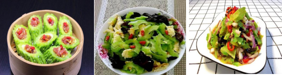 (1)营养价值:苦瓜营养丰富,风味独特。每100g苦瓜中含蛋白质1.0g、脂肪0.1g、碳水化合物4.9g、维生素C多达56mg。苦瓜