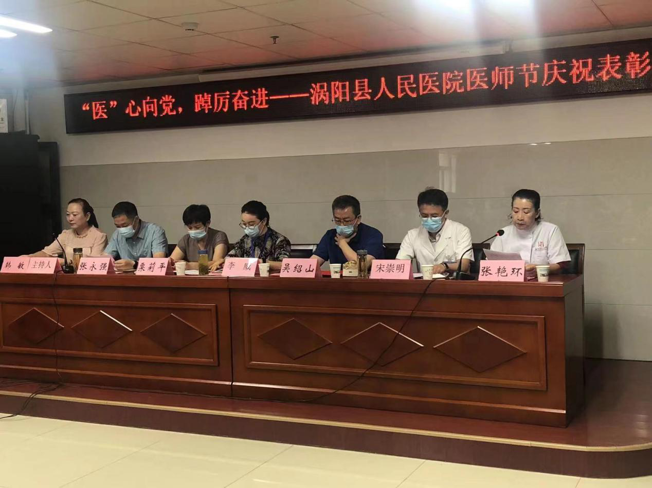 为庆祝“8.19”第五个医师节,提升医疗队伍凝聚力和职业荣誉感,激励广大医务工作者秉承医者仁心,我院于8月18日在九楼会议室举行“2022年中国医师节”庆祝表彰大会。县卫健委副主任李威,我院院长吴绍山,党委副书记、副院长宋崇明,党委委员、副院长张艳环,党委委员、纪委书记栗莉平,党委委员张永强出席会议并在主席台就坐,40余位非值班医师参加会议。会议由党委委员、工会主席韩敏主持。