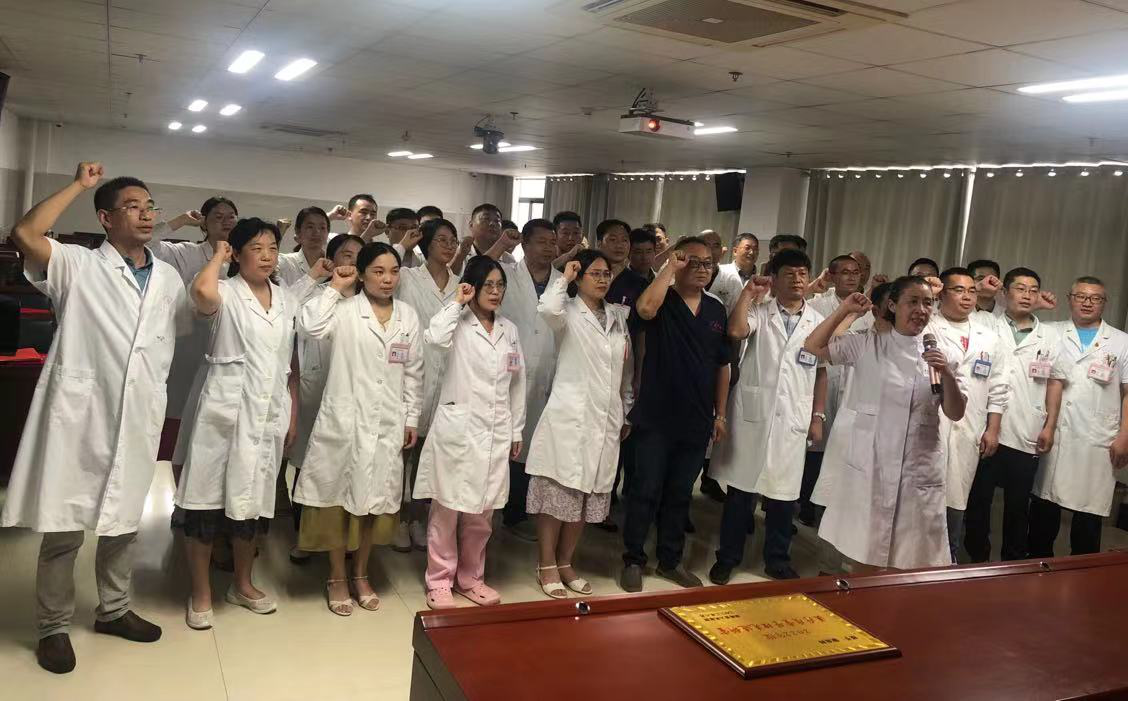 首先由张艳环带领广大医师宣读中国医师宣言,全体医务人员举起右手,庄严而坚定地宣誓了中国医师誓言,强化了医师的职业神圣感和使命感,深化了对新时代医师职业精神核心思想的理解,增强了广大医务人员全心全意为患者服务的责任感和使命感,提升医生素质,展现医师风采。