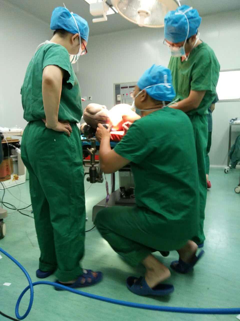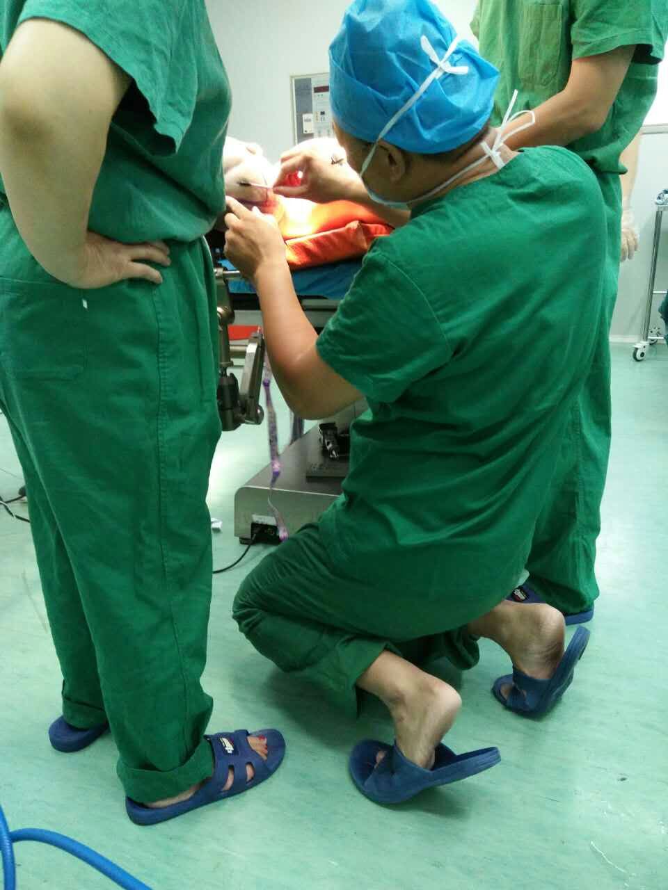 7月25日上午,我院神经外科成功对一名“交通性脑积水、右侧基底节出血术后、高血压病(很高危组)、症状性癫痫”患者施行“脑室腹腔分流术”,这是我院将该患者生命第二次从死神手里抢了回来。当时患者脑积水进行性加重,病情危重,随时有生命危险,虽然我院神经外科副主任医师付心好才下夜班,科副主任、副主任医师周维广休息,但为了患者安危,他们不顾自身健康与疲乏,积极进行术前准备,立即投身到手术当中,在最短时间内开颅减压。手术过程中,付心好、周维广、刘连英,护士张晓芳、李艳君以及麻醉医师王安迎等医务人员团结协作、各司其职,大家争分夺秒又有条不紊的抢救着,从上午九点三十分开始,到十一点二十分才结束,历时一小时五十分,由于患者病情复杂,手术难度较大,体位特殊,为确保手术顺利进行,主刀医生付心好术前跪地操作绘制手术入路,使手术进行的顺利、成功,并且患者出血较少。