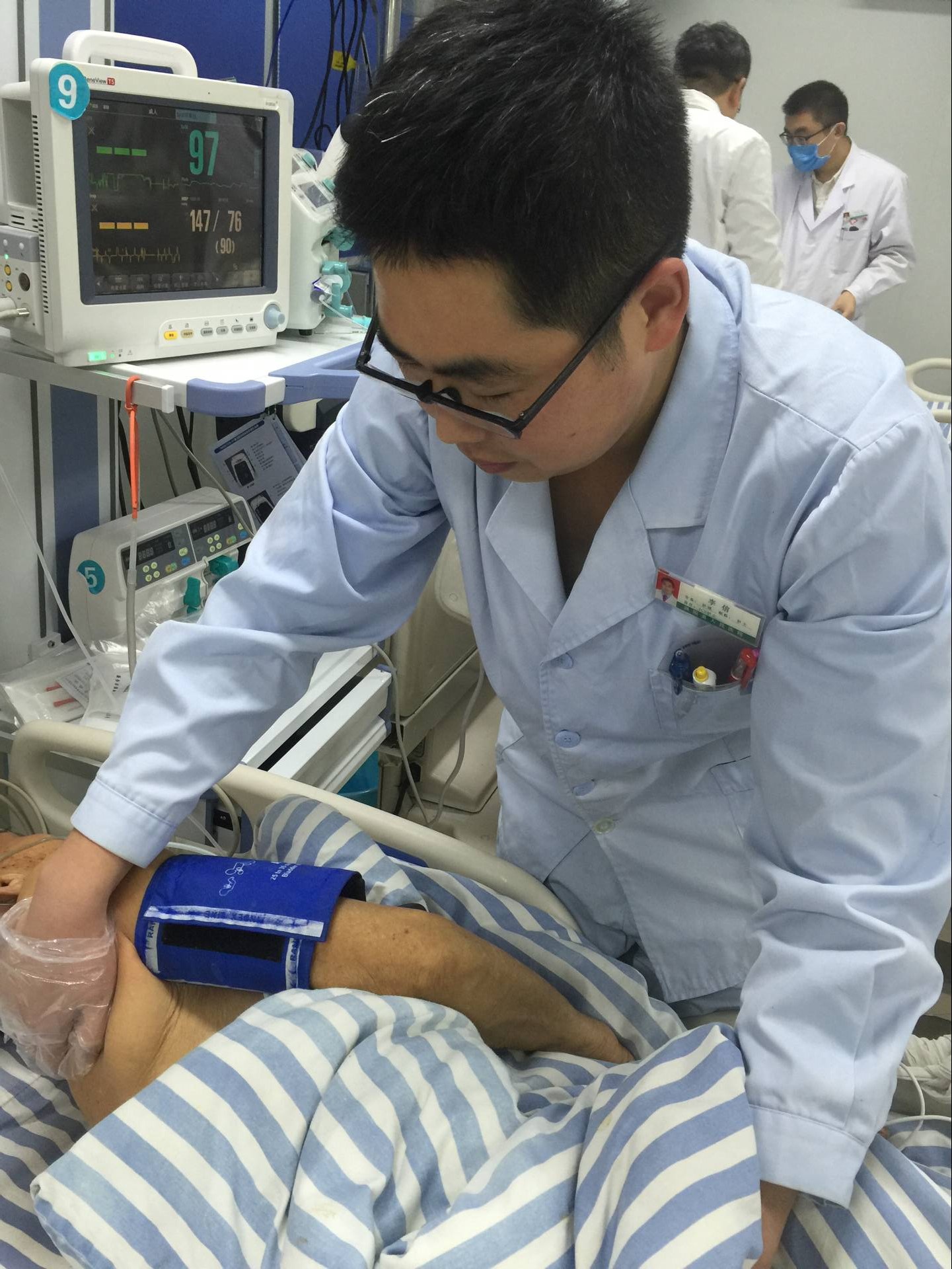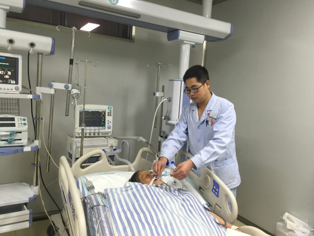(李信为患者吸痰后插呼吸机)