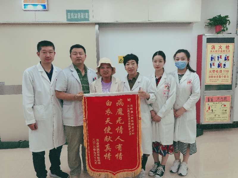 9月19日上午,在我院放疗科上演了温馨感人的一幕。患者李某侠,40岁,于2019年诊断乳腺癌,近期一直在我院接受放疗,当日所有治疗完成,各项指标正常痊愈出院,特送锦旗一面,对王从禹主任及放疗科全体医护人员表示一再感谢!
