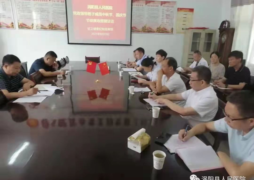为进一步严明廉洁纪律,加强党员干部教育,确保文明廉洁过节,2021年9月16日上午九点,县纪委驻县卫健委纪检组组长赵卿龙在我院行政楼三楼会议室对县医院班子成员进行节前廉政谈话暨2021年第三季度廉政约谈。会议由县医院院党委委员、纪委书记栗莉平主持