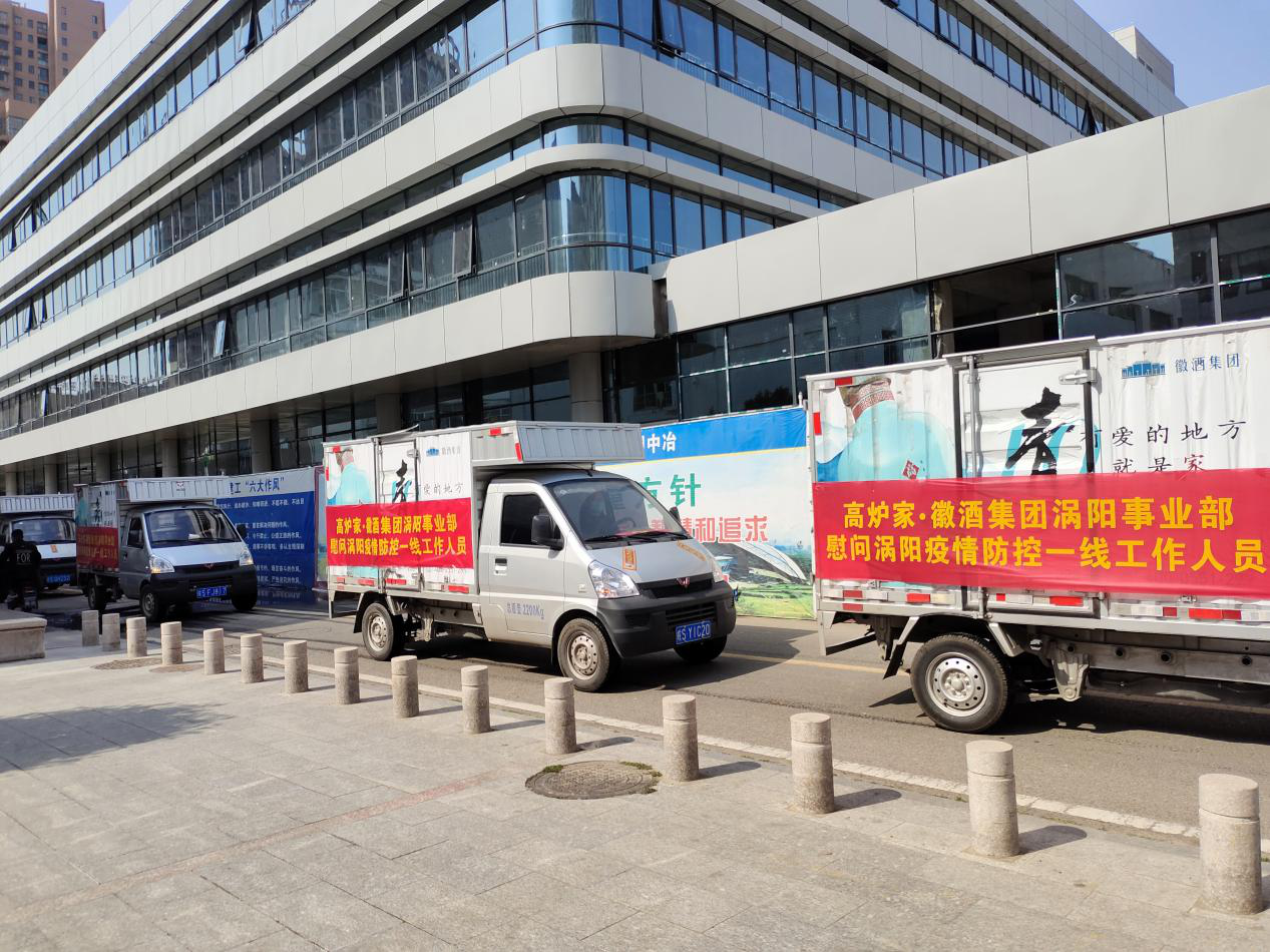 2022年4月2日,徽酒集团涡阳事业部来到我院,对奋战在防疫一线的工作人员表示慰问并捐赠物资支援抗疫。我院党委委员、工会主席韩敏,党委委员、纪委书记栗莉平,党委委员张永强,办公室主任刘强,医务部部长柴林涛等到现场热情接待。