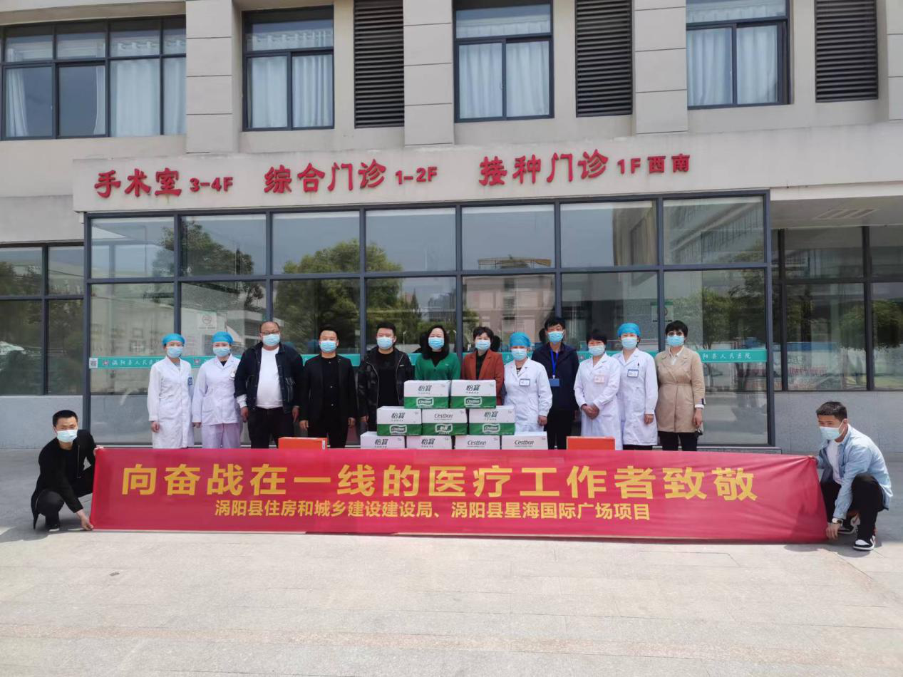 2022年4月19日,县住房和城乡建设局、星海国际广场项目组来我院慰问广大医务人员,并捐赠物资支援抗疫。我院纪委书记栗莉平、工会主席韩敏及我院采样人员代表参与对接。