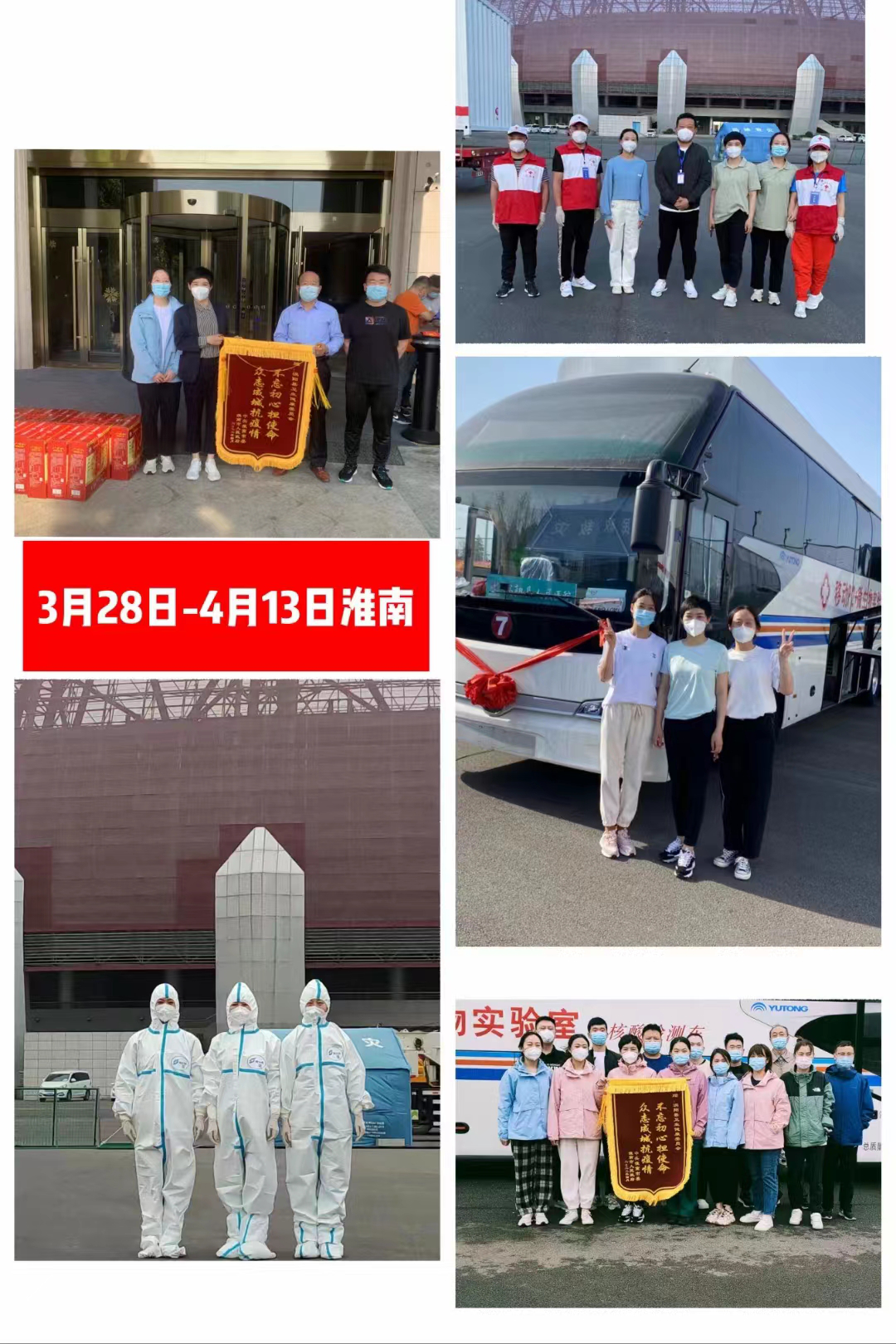 2022年3月14日晚应省疫情指挥部统一安排,连夜支援铜陵市,队员由我院6名、中医院3名、涡南卫生院1名计10名检验人员和我院3名护士、1名驾驶员共计14人组成的精干团队。这支特别行动队是我院检验、护理队伍中的年轻精英,以检验科副主任、副主任检验师高静为队长,平均年龄为27.5岁,体能过硬、业务娴熟,能够胜任高强度的核酸检测工作。我县移动核酸检测队在铜陵工作14天,共完成58.2万人次检测任务,铜陵社会面清零后,3月28日又按省疫情防控指挥部安排转战淮南工作,共检测68.3万人次。淮南疫情告结后,4月13日六安疫情发展迅猛,又奉命支援六安,在六安工作9天,检测54.7万人。4月下旬,利辛疫情牵动在外支援的她们,4月22日又按市疫防指命令到利辛支援,在利辛工作12天,共检测60.1万人。