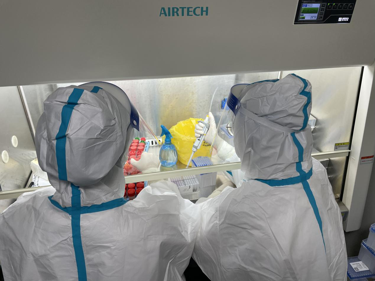 因为是核酸检测人员,平常工作都和大量样本接触,李倩,余苗苗不敢在校内久留,而此时女孩症状已明显缓解,我们便安心的回到宾馆。走之前老师和学生都表示感谢,她俩说:“我们俩都是共产党员,又是一名医务工作者,能为群众做点事都是应该的,这也是医务工作者的职责所在”。 (检验科李倩)