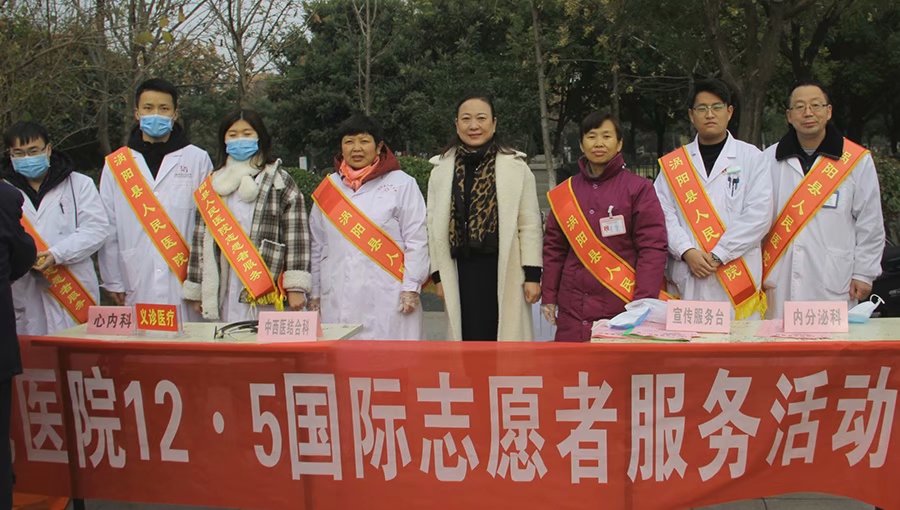 12月5日上午,由涡阳县新时代文明实践中心集中开展的2020年“国际志愿者日”志愿者服务活动暨表彰大会在滨河社区公园举行。我院白衣天使志愿者服务队积作为一支特殊的志愿者队伍,肩负着救死扶伤、医人病痛、奉献社会的光荣使命,积极开展各项志愿服务活动,得到了广大群众的普遍认可。本次活动在院党委委员、工会主席韩敏的带领下,他们冒着严寒来到滨河公园,加入到全县志愿者服务队伍,这些队伍中有恒康科技按摩志愿者服务队、社区志愿者义剪队、蓝天志愿者救援队等。县医院志愿者服务队在活动现场为大家热情地测量血压,接受咨询,诊疗常见病、多发病、发放健康小资料等,受到群众好评。(郭义军)