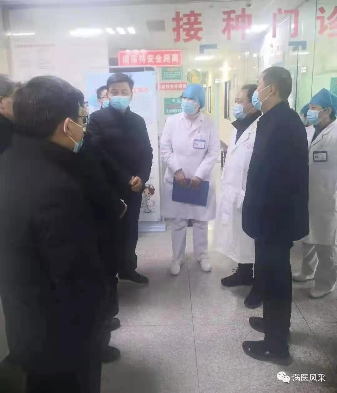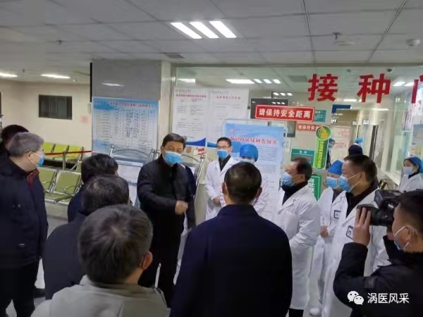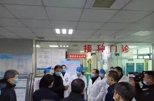 2021年1月1日上午9时许,县委书记胡明文,县人大常委会主任刘峰,县委常委、县委办公室主任、县政法委书记苏志杰,副县长、县卫健委主任蒋召亮等县领导在县卫健委、县疾控中心有关领导的陪同下到我院视察疫情防控及新冠疫苗接种工作。
